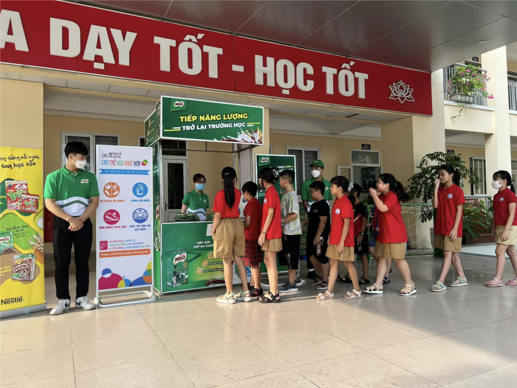 Cổ động luyện tập thể thao phát triển thể lực và tầm vóc học sinh trong trường học và phát thức uống miễn phí Milo nước nguyên hộp.