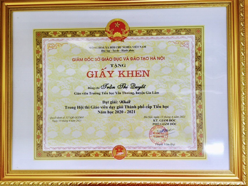 Chúc mừng cô giáo Trần Thị Quyết đã đạt giải Nhất trong Hội thi GVG cấp TP