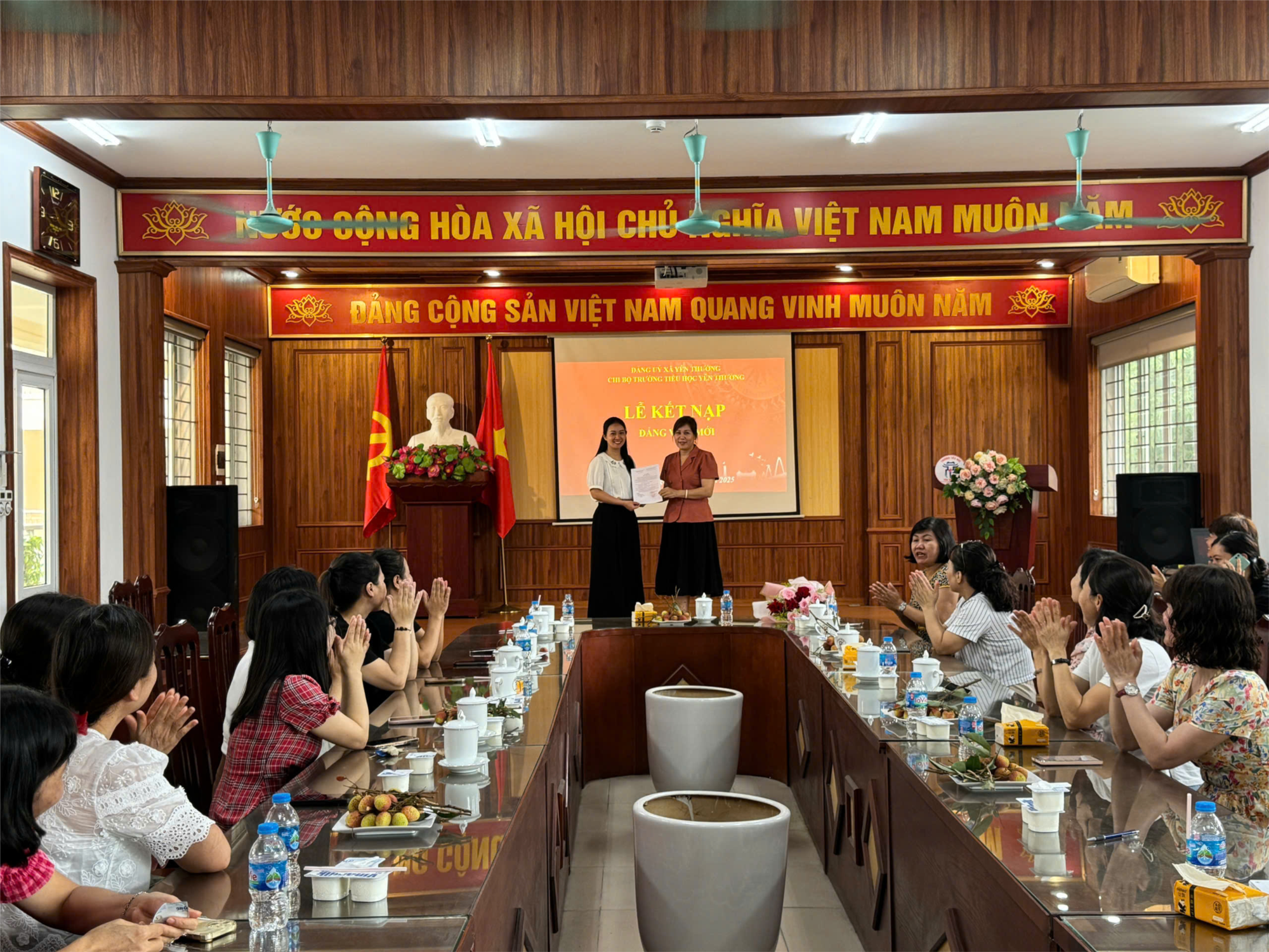 Chúc mừng đồng chí đảng viên mới! Mong rằng đồng chí sẽ tiếp tục phát huy vai trò tiên phong, gương mẫu, hoàn thành xuất sắc mọi nhiệm vụ được giao, góp phần xây dựng trường Tiểu học Yên Thường ngày càng vững mạnh.