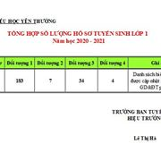 Dưới đây là bảng tổng hợp số lượng hồ sơ tuyển sinh lớp 1 năm học 2020 - 2021. Các bậc phụ huynh và các thầy cô giáo hãy là điểm tựa vững chắc cùng đồng hành với các chú Ngựa đáng yêu mang đến những điều tốt đẹp nhất cho các con nhé!